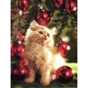 Cute White Cat Under a Christmas Tree 1970s Retro Kitsch Wall Art Print SE9