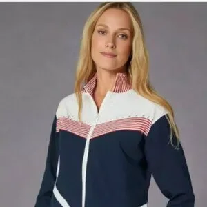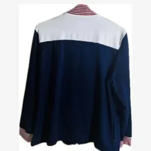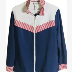 D&D Lifestyles Top Jacket Women Size LP Full Zip W/Pockets Rhinestones Patriotic