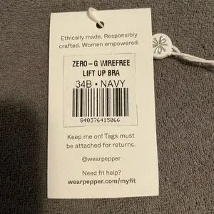 NWT - Pepper Zero-G Wirefree Lift Up Bra - 34B Navy