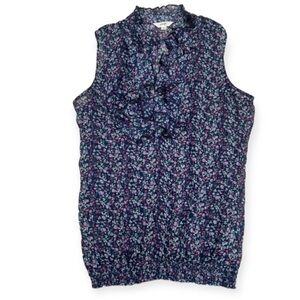 Energie Retro Button Down Ruffle Floral Blouse