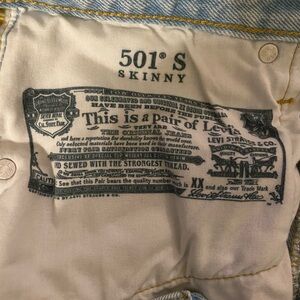 Levi's Blue Skinny Jeans offer a contemporary and stylish fit, perfect for a sleek look. Crafted in a classic blue shade, these pre-loved jeans are versatile for any casual occasion. The skinny silhouette enhances your style effortlessly.