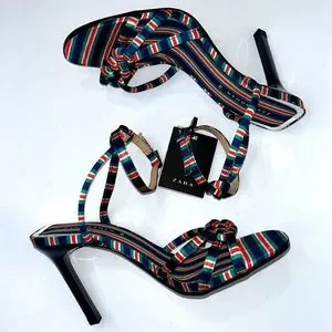 Step out in style with these chic striped multicolor heeled sandals. Perfect for any occasion, these shoes offer a vibrant touch to your outfit. Worn once.
