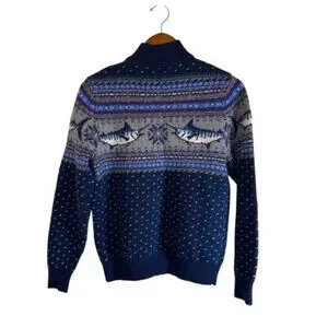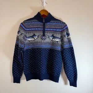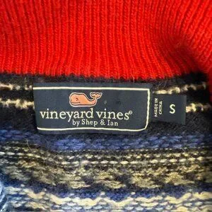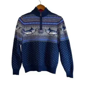 Vineyard Vines Sweater Sm Shark Design Quarter Zip Pullover Merino Wool Alpaca