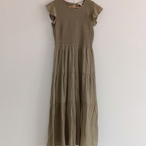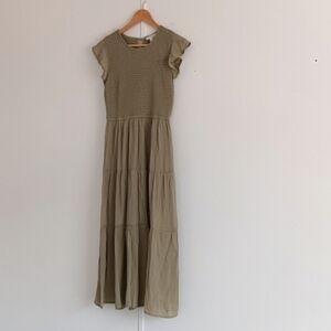 ![[ Roolee Boho Minimalist Modest Light Olive Green Smocked Ruffled Midi Dress ] - Picture 1 of 15](https://di2ponv0v5otw.cloudfront.net/posts/2025/05/07/681b377c4a072b303192dd8f/m_681b37d9f6035a7c608d0d14.jpg)