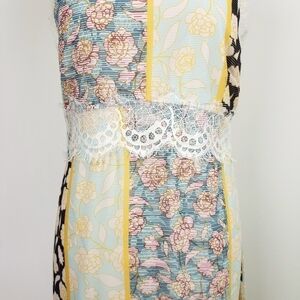 Tularosa Monroe halter neck cross back dress floral stripe size M