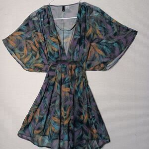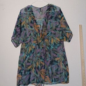 H&M Womens Cardigan Island leaf prin Sheer Cover-up Size 6