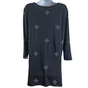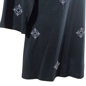 J. Jill Boho Embroidered Tunic Chic Top Sz M Black Boho V-Neck 3/4 Sleeve Cotton
