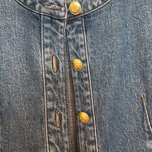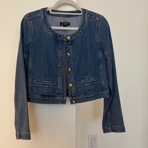 Stylish blue denim jacket with gold buttons. Features front pockets and long sleeves. Perfect for casual wear. In great condition. Was never worn.