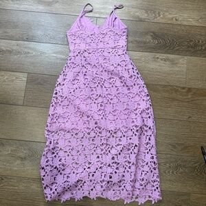 ASTR The Label Lace Overlay Midi A-Line Dress, Light Orchard, Size S, Dressy
