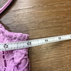 Size Small, measurements taken in flat lay position, across waist, pit to pit and full length (top of strap where it is adjusted now)