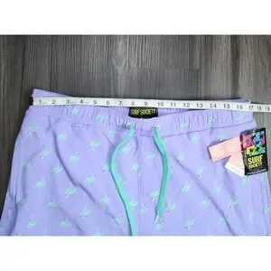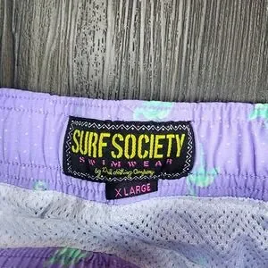 The Surf Society Swim Trunks in Men's Size XL with a Green Flamingo Pattern are a stylish and fun choice for beachwear. These swim bottoms feature a vibrant flamingo design, perfect for adding a playful touch to your beach look. Made for surfing and other water activities, these trunks are both comfortable and functional, making them ideal for a day by the water.