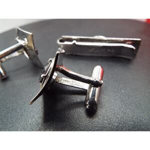 Vintage 3pc Set Anson Sterling Silver Black Onyx Cufflinks & Tie Clip