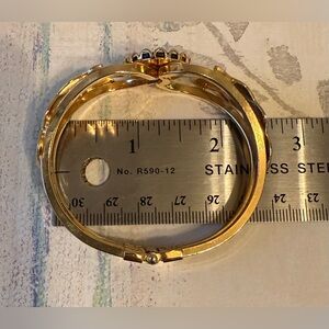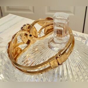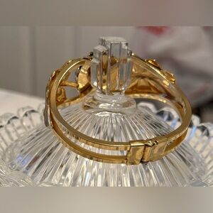 Vintage Gold Tone Hinged Bangle Bracelet w/Gemstone