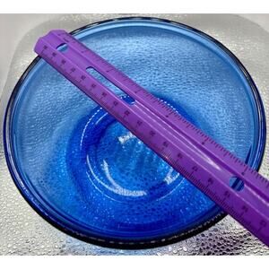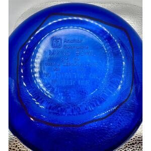 Add a touch of vintage charm to your kitchen with this set of two Anchor Hocking cobalt blue mixing bowls. Crafted in the United States during the 1970s, these bowls are a testament to classic mid-century modern design, featuring a round shape and an impressed backstamp authenticating their origin. The set includes a 2.5 Qt and a 1 Qt bowl, both made of durable glass fused with care, reflecting a production technique commonly used in that era. These bowls are ideal for all occasions, whether used for serving or mixing ingredients, and their striking blue hue will make a statement on any table.