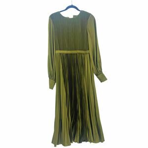 Mac Duggal Long Sleeve Pleated Satin Cocktail Mid Dress Olive Green Size 12 NWT