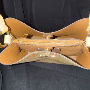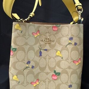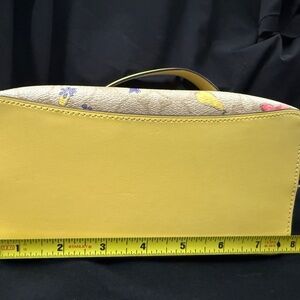 Cute Veggie Purse in very good condition. Nice spring and summer colors. Nice size, perfect for everyday use. 8 inches wide 8.8 inches tall. Comes with long strap to use as regular purse or crossbody. Zipper and buttons all in perfect condition. Note: does have some barely noticeable pen marks inside the purse ( pictured on the last photo)