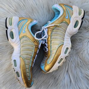Rare Nike Air Max Tailwind 4 in Metallic Gold & Aqua. Rhinestone Detail. Great Preowned Condition With Light Signs Of Normal Use, As Visible.