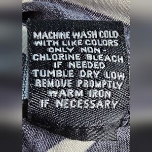 Sleeve to elbow/just below Buttons on neck, collar & breast pocket Tie waist Flowy, comfy & professional Black and cream chevron style pattern. Comes from a Smoke-Free home.