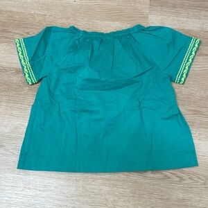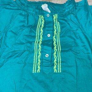 Crewcuts embroidered Teal Aqua Neon Green Embroidered Blouse Girl’s Small 6/7