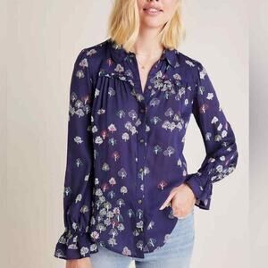 Maeve Anthropologie Frederika Tree Printed Balloon Sleeve Ruffled Blouse 6