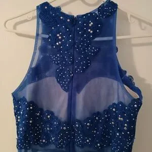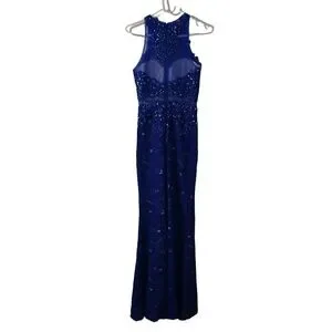Anny Lee Womens Royal Blue Long Sequined High Neck Wedding, Prom, Evening Gown Cocktail Dress Size Small