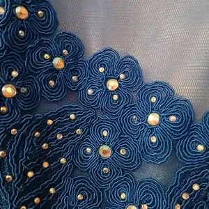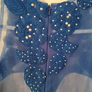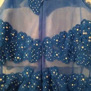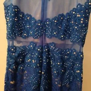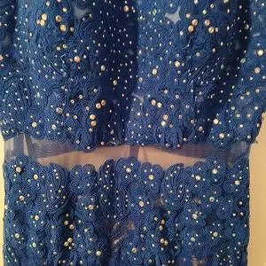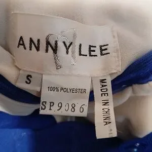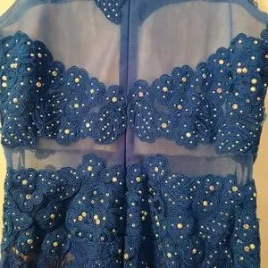 Anny Lee Blue Sequined Lace Wedding Prom Cocktail Evening Gown Dress Small