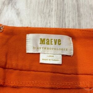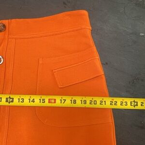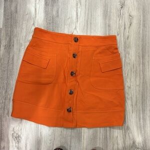 Stylish mini skirt by Maeve. Features a vibrant orange color. Button-front design with pockets.