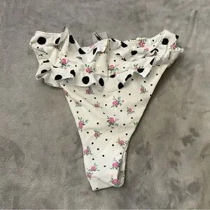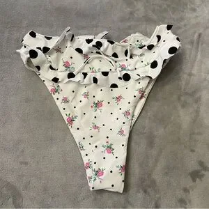 Fun polkadot and floral mix pattern ruffle bikini bottom by for love and lemons. New without tags never worn - has a marker spot on the back ruffle as shown