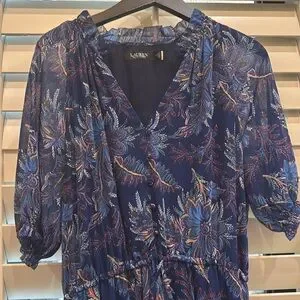 Ralph Lauren Sz 12 Blue Floral Dress