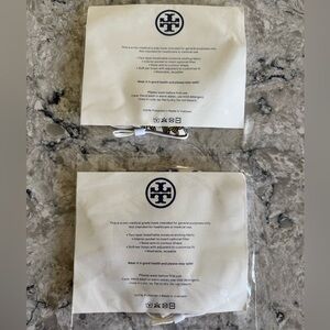 Set of two stylish face masks. One features a blue floral design. The other has a geometric pattern in gold and black.