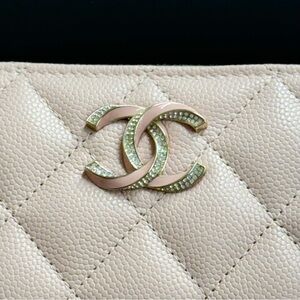 CHANEL Light Pink Caviar Matelasse Zip Coin Purse with Pink Enamel, and Rhinestone CCs