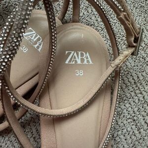 Zara Tan Sandals with Rhinestone Embellishments
