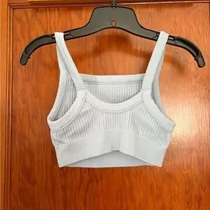 Stylish ribbed padded crop top. Light blue color. Perfect for casual wear.