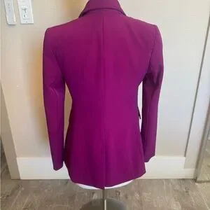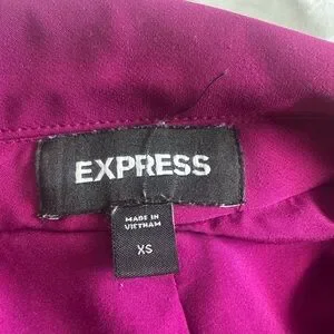 This Express blazer in a striking purple is crafted from a structured fabric, offering a tailored silhouette with professional shoulders and notched lapels. Ideal for formal occasions, it combines classic style with a modern edge.