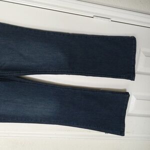 These Democracy jeans feature a stylish flare and wide leg design in a versatile blue color. The high-waisted fit and clean, dark wash make them perfect for both casual and dressier occasions. Enjoy the comfort and timeless style of these must-have jeans.