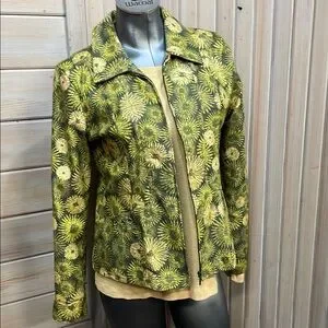 Stylish floral jacket in vibrant green. Perfect for adding a pop of color to your wardrobe.