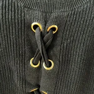 Women’s Knit Long Sleeve Thick Grommet Lace Up Sweater