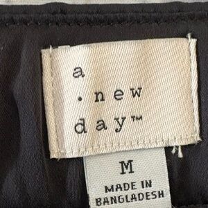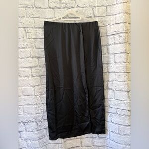 A New Day stylish black satin midi skirt with slit in front. 35” long. Size M. Stretch elastic waistband. Excellent condition, no stains, holes or rips.