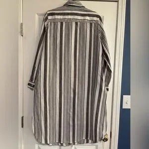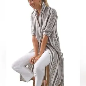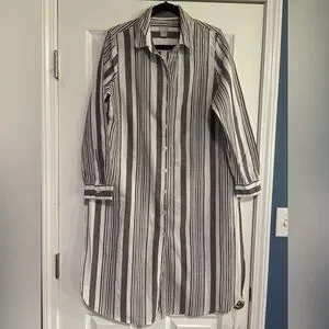 Chico’s striped long shirt dress. Features black and white stripes. Perfect for casual outings.