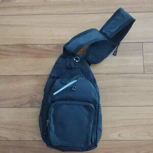 NEVER USED LIKE NEW...has no brand labels on it or writings on it looks new just a white sign that shows you can pull a head phone cord through your back pack while leaving cell phones safely in backpack