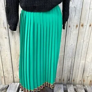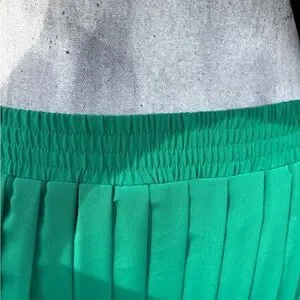 This elegant green pleated skirt adds a touch of sophistication to any outfit. Perfect for both casual and formal occasions.