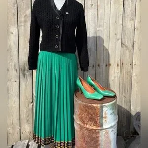 Vintage Chaus Green Pleated Skirt Sz 10