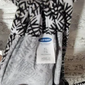Elevate your wardrobe with the versatile Old Navy Slip Dress, a perfect blend of comfort and style. Designed in a size XL for a relaxed fit, this knee-length dress boasts a timeless black and white geometric pattern that easily transitions from day to night. The round neckline and sleeveless cut make it a great choice for any casual occasion or travel adventure. Crafted from a soft mix of rayon and spandex, the dress offers gentle stretch for all-day ease and is machine washable for hassle-free care. Whether you're enjoying a spring breeze or cozied up in fall, this slip dress is an essential piece that can be styled for every season. It's a simple yet chic addition to your clothing collection.