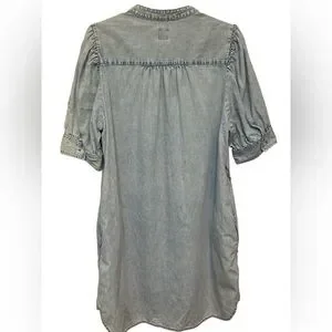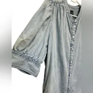 This elegant blue midi dress from GAP is perfect for both casual and work settings. Featuring 3/4 puff sleeves and a mandarin collar, it offers a stylish and comfortable fit. The crew neck and buttoned design add a touch of sophistication to this versatile piece.