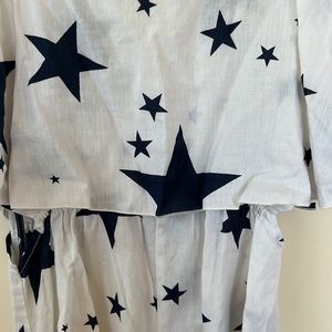 - Anthropologie Indah Flounce Star Romper Swim Cover Up White Blue Cut Out