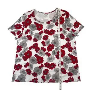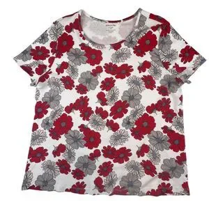 Adorn your wardrobe with the White Stag Bloomcore Crew Neck T-Shirt, a perfect blend of comfort and style. The floral pattern dances across the fabric, creating a cheerful aesthetic that's ideal for spring and summer. Crafted from 100% cotton, this multicolor top promises breathability and easy care, making it a staple for anyone's casual collection. This classic fit, plus-size tee features a crew neckline and short sleeves, providing a relaxed silhouette that's versatile for various occasions, from workwear to travel. The knit fabric ensures a soft touch against the skin, while the pullover closure allows for effortless dressing. With its vibrant design and comfortable feel, it's an easy choice for those who value both look and comfort. Measures 26 inches long and has a 42-inch chest. We ship packages daily M-F. This item's fabric may attract lint or hair. It ships from a smoke-free, dog-friendly home. While cleaned, some lint or hair may remain.