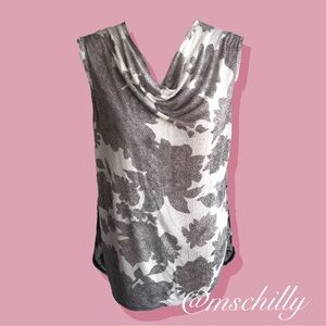 - CAbi Tango Scoopneck Floral Tank Top Blouse Black White Gray Grey Sleeveless 3057
