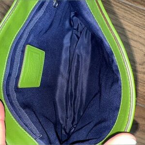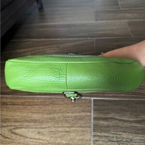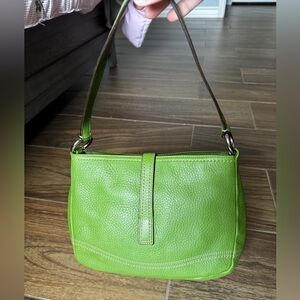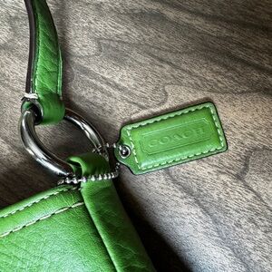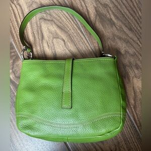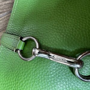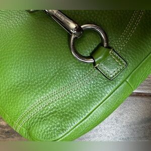 It is made of pebbled leather and features silver-tone hardware, including two large rings connecting the strap to the body of the bag. The bag has a zip-top closure and a detachable leather tag. It was released as part of the 2008 collection.