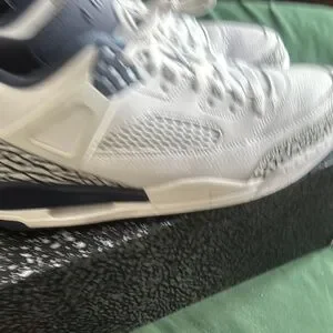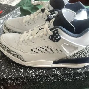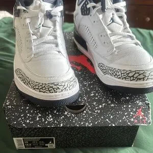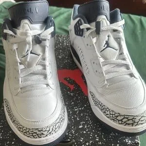 Stylish Air Jordan sneakers in white and black. Features iconic design and comfortable fit.