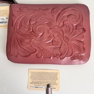 Elegant and stylish, this Patricia Nash wristlet features a beautiful pink embossed leather design. Perfect for adding a touch of sophistication to any outfit. Cassini Writlet NWT. Patricia Nash CASSINI large